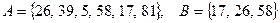 b. А = {5}, В = {3, 4, 8, 9}, С = {1, 6};