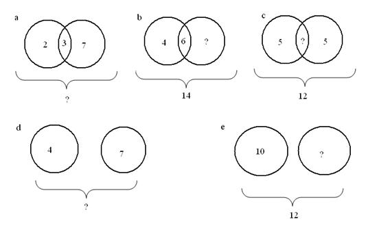 2. Условия задач даны на схемах. Найдите численности множеств, которые отмечены знаком «?»