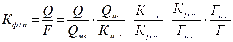 Q – выпуск продукции; Qмз – выпуск продукции без учета материальных затрат; Км-с – количество машинно -смен работы оборудования; Куст. – количество установленного оборудования; Fоб. – стоимость оборудования; F – стоимость всех основных фондов.