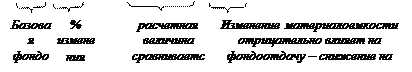 Показатель фондоотдачи анализируют с точки зрения воздействия на него производственно-технических факторов. С этой целью фондоотдачу представляют в виде произведения ряда показателей и отслеживают влияние каждого из перечисленных факторов: