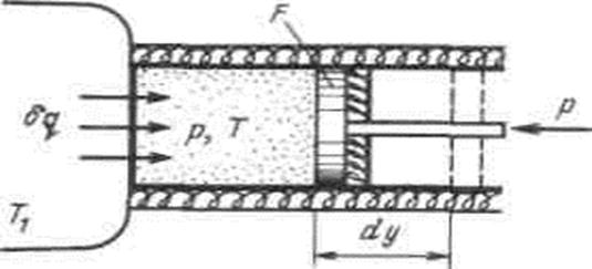 , совершаемая против внешней силы Р, оказывается меньше, чем pdv, так как часть ее затрачивается на преодоление трения и переходит в теплоту