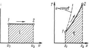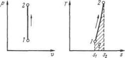 Рисунок 5.1 - Изображение изохорного процесса в р,v- и T, s -координатах