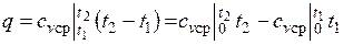— средняя массовая изобарная теплоемкость в интервале температур от t 1до t 2при