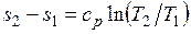 т. е. температурная зависимость энтропии при изобарном процессе тоже имеет логарифмический характер, но поскольку ср>сv, то изобара в Т, s-диаграмме идет более полого, чем изохора.