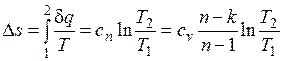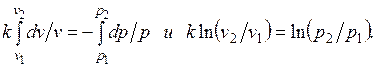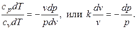 Интегрируя последнее уравнение при условии, что k =cp/cv= const, находим