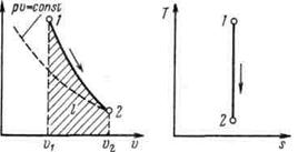 Рисунок 5.3 - Изображение изотермического процесса в р, v- и T, s -координатах.