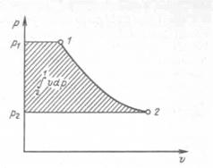 называют располагаемой работой. В p, v -диаграмме она изображается заштрихованной площадью.