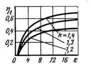 от степени сжатия при различных показателях адиабаты.