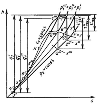 Рисунок 8.11 - Влияние давления перегретого пара на параметры цикла Ренкина