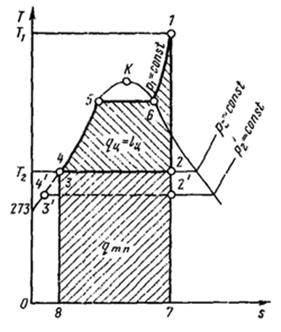 Рисунок 8.13 - Теплофикационный цикл в Т,s -диаграмме