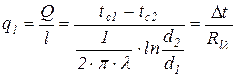 Тепловой поток Q через цилиндрическую стенку можно отнести к единице длины l: