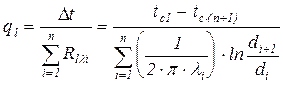 где di и di+1 - соответственно внутренний и внешний диаметры iго слоя.