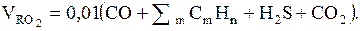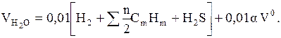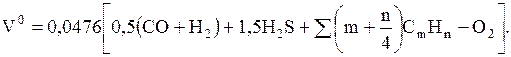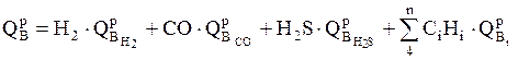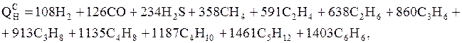 где Н2, СО, H2S и т.д. - объемное содержание газов, входящих в состав газообразного топлива, % объемный.
