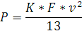 (км/ч), его лобовой части автомобиля F (м2) и коэффициента обтекаемости К (кг/м3):