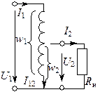 Автотрансформатором называют трансформатор, у которого обмотки высшего и низшего напряжений имеют магнитную и электрическую (гальваническую) связь. У понижающегоо автотрансформатора (рис. 3.16) вторичная обмотка с числом витков w 2 является частью первичной с числом витков w 1. Пренебрегая потерями в обмотках, рассеянием магнитного потока и током холостого хода, получим