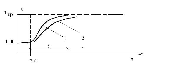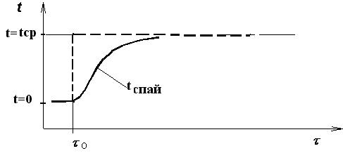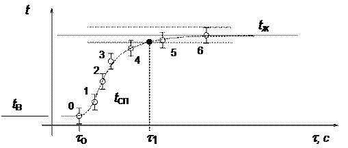 Тепловая инерционность термопары определяется по графику переходного процесса, как отрезок времени