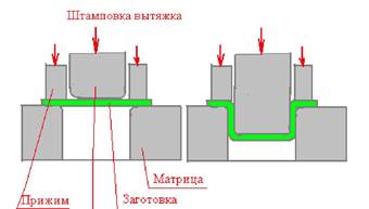 Штамповке вытяжке обычно предшествует штамповка вырубка для получения контурной плоской заготовки.