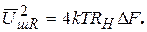 Средний квадрат напряжения флуктуационных шумов на R Н