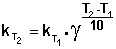 Величина, показывающая, во сколько раз увеличивается константа скорости при повышении температуры на 10 градусов, есть температурный коэффициент константы скорости реакции γ. Математически правило Вант-Гоффа можно записать следующим образом: