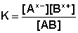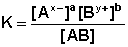 Процесс диссоциации слабых электролитов является обратимым и в системе существует динамическое равновесие, которое может быть описано константой равновесия, выраженной через концентрации образующихся ионов и непродиссоциировавших молекул, называемой константой диссоциации. Для некоторого электролита, распадающегося в растворе на ионы в соответствии с уравнением: