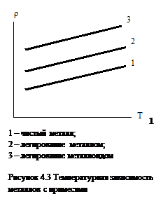 То есть наличие примесь увеличивает удельное сопротивление металла, но его зависимости от температуры остается линейной (рис. 4.3)