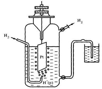 В качестве электрода сравнения был выбран «водородный электрод». Устройство этого электрода показано на рисунке 9.2.