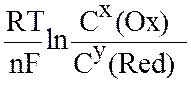 Если условия отличаются от стандартных, то величину электродного потенциала рассчитывают по уравнению Нернста.
