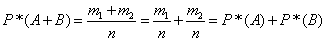 Пусть A и B — два несовместных события, причем в n испытаниях событие A произошло m1 раз, а событие В произошло m2 раз. Тогда частоты событий A и В соответственно равны P*(A)=m1/n, P*(B)=m2/n. Так как события A и В несовместны, то событие A+B в данной серии опытов произошло m1+m2 раз. Следовательно,