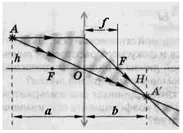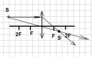 Изображением точки в линзе является точка пересечения всех вышедших из этой точки преломленных луче (действительное изображение) или их продолжений (мнимое изображение).