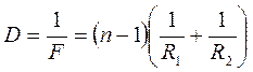 Если D > 0 — линза собирающая; если D < 0 — линза рассеивающая. Если окружающая среда – вакуум (или воздух)