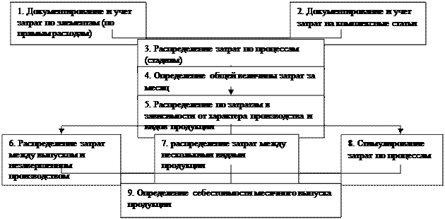 Для осуществления контроля за затратами производственный процесс делится на стадии (процессы) (рис. 14). Отсюда и название метода –попроцессный.