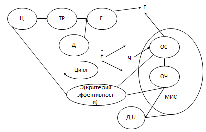 При системном подходе рассматривается этап макро- и микропроектирования. При системном подходе на этапе макропроектирования определяются общие параметры модели, исходя из поставленной цели. Кроме того, разрабатывается критерий оценки возможности реализации поставленной цели (цикл). Макропроектирования соизмеримо с проведением исследований для нахождения компромисса (F, R, T – выходные параметры).