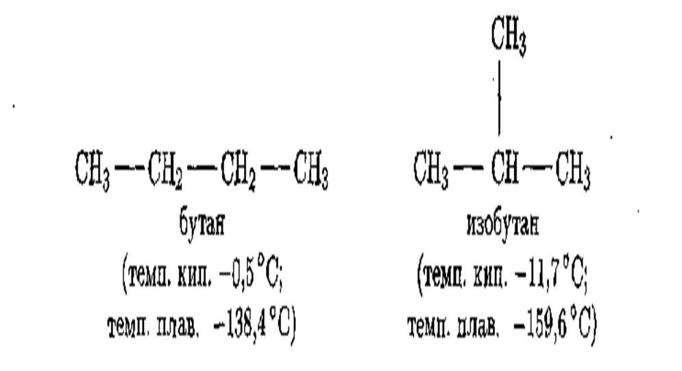 С увеличением числа С-атомов в молекулах резко возрастает число изомеров предельных углеводородов. Метан, этан и пропан не имеют изомеров; бутанов С4Н10 существует два: