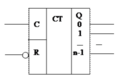 | C – информационный вход для импульсов; R – сигнал с предыдущего триггера; Qi – выходы счётчика. |