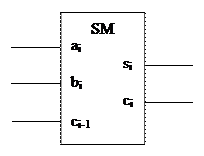 | ai, bi – входы для i-ых разрядов слагаемых; ci-1 – вход для единицы переноса из соседнего младшего разряда; si – выход для суммарного значения i-ых разрядов; ci – выход для единицы переноса i-го разряда. |