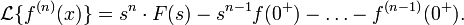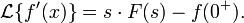 Изображением по Лапласу первой производной от оригинала по аргументу является произведение изображения на аргумент последнего за вычетом оригинала в нуле справа: