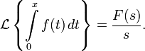 Изображением по Лапласу интеграла от оригинала по аргументу является изображение оригинала, делённое на свой аргумент: