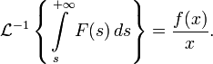 Обратное преобразование Лапласа от интеграла изображения по аргументу есть оригинал этого изображения, делённый на свой аргумент: