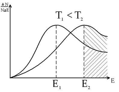 Е1 – энергия, которой обладет большинство частиц при температуре Т1,