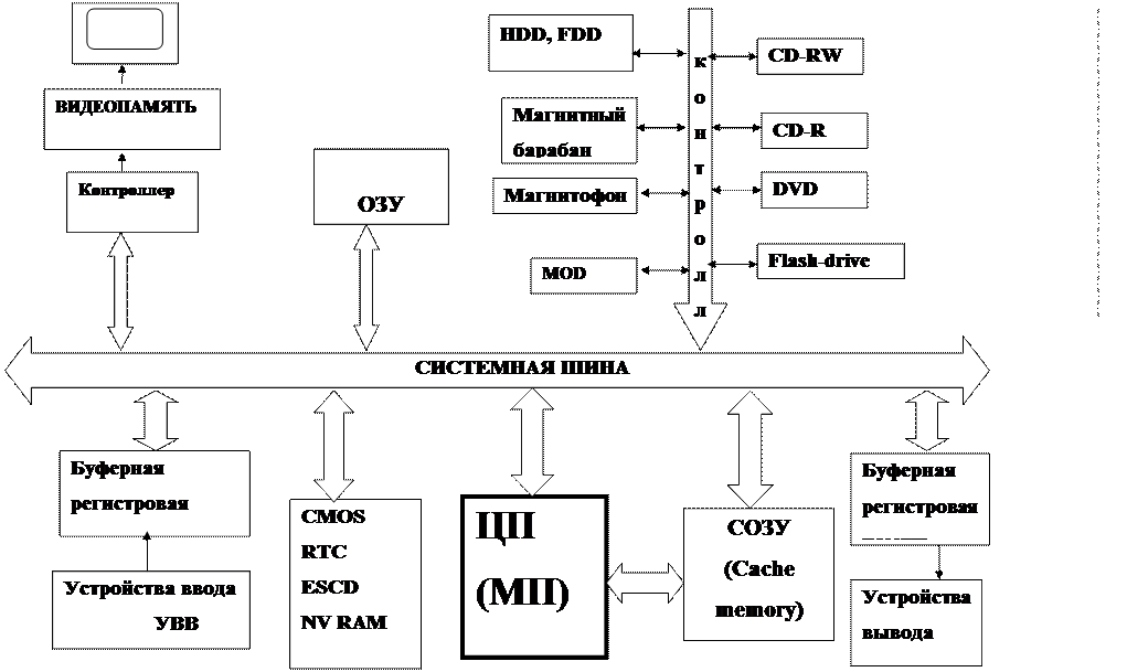 Рисунок 1 – Структурная схема современной ЭВМ с устройствами памяти