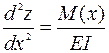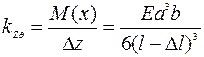 , где x, z – соответственно, направления вдоль нейтральной оси в плоскости пластины (x-y) и перпендикулярно ей; М(х) – изгибающий момент как функция координаты х; Е – модуль Юнга материала балки; I – момент инерции поперечного сечения балки (при прямоугольном сечении балки высотой а и шириной в: