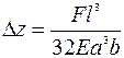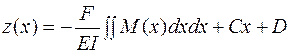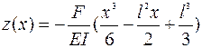При приложении силы F к свободному концу закрепленной с одного края (консольной) балки длиной l, т.е. в точке с координатой х = l, смещение нейтральной плоскости балки вдоль оси z относительно исходного ее положения при отсутствии силы как функция х: