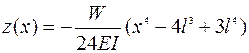 При приложении к консольной балке длиной l распределенной силы F=Wl, где W - удельная сила, равная F/l, и при граничных условиях z(х = l)=0: