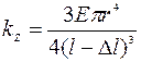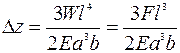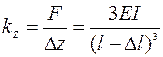 Связь прогиба балок Δz с действующей силой F может быть также описана через коэффициент упругости пружины, или поперечную жесткость балки kZ (F=kZΔz). Величина kz определяется, в первую очередь, геометрией (длиной l и моментом инерции сечения I) балки, а также модулем упругости материала: