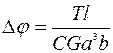 При кручении консольной балки крутящим моментом Т вдоль главной оси х максимальный угол закрутки свободного конца балки Δφ равен: