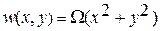 . При этом прогиб напряженной пластины от исходного ненапряженного состояния как функция координат в плоскости x,у равен: