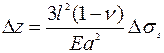 [39]. Для консольной балки прямоугольного сечения эти соотношения применимы при l/b>>1 и координате y, удаленной от боковых краев балки y=в/2, т.е. близкой к 0. В этом случае при х=l и у =0 отклонение конца балки при воздействии разности поверхностного натяжения Δσs равно: