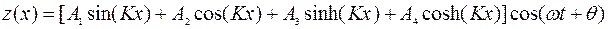 . Это решение показывает, что балки при резонансе осциллируют по синусоиде вдоль оси х, а их форма определяется граничными условиями. При этом первая и основная мода колебаний балки соответствует форме, которую она принимает при статическом изгибе (при нулевой частоте и амплитудном значении прикладываемой нагрузки).