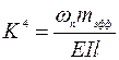 соответственно. С учетом mэфф и kэфф этих балок их резонансная круговая частота может быть с достаточно высокой точностью рассчитана по соотношению: