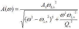 Вблизи резонансного пика частотная зависимость амплитуды вынужденных колебаний балок как одномерных линейных гармонических демпфирующих осцилляторов при отсутствии внешнего трения (вязкости среды, т.е. в вакууме, описывается соотношением